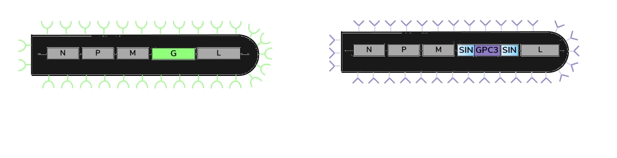 In this figure we show an example from our more current work, where we have replaced the glycoprotein of VSV with the glycoprotein of Sindbis virus and added a GPC3 targeting nanobody.